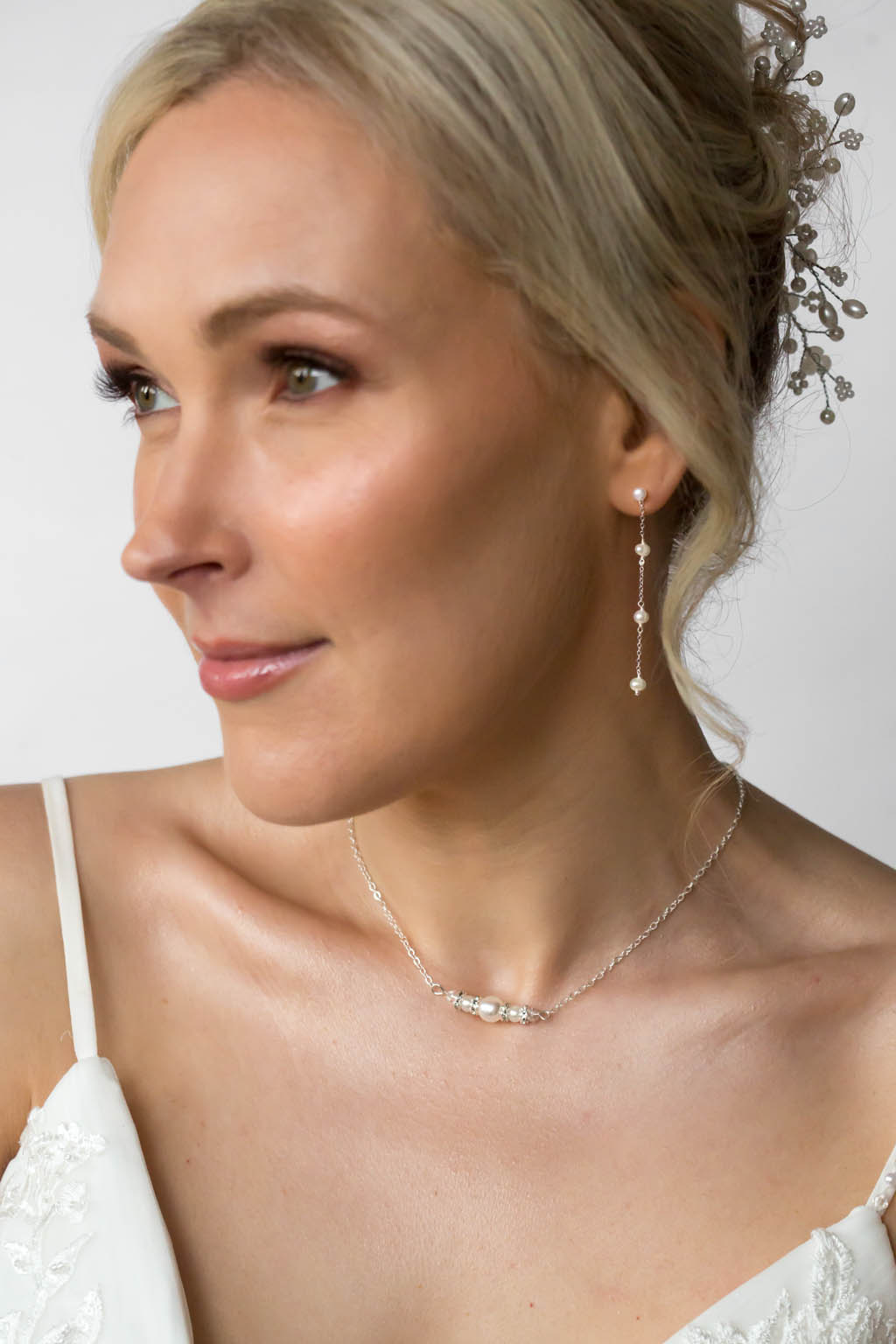 Many of our brides also choose to pair their pearl jewellery with matching hair accessories, such as pearl combs, pins, or tiaras, to create a seamless and polished bridal style.