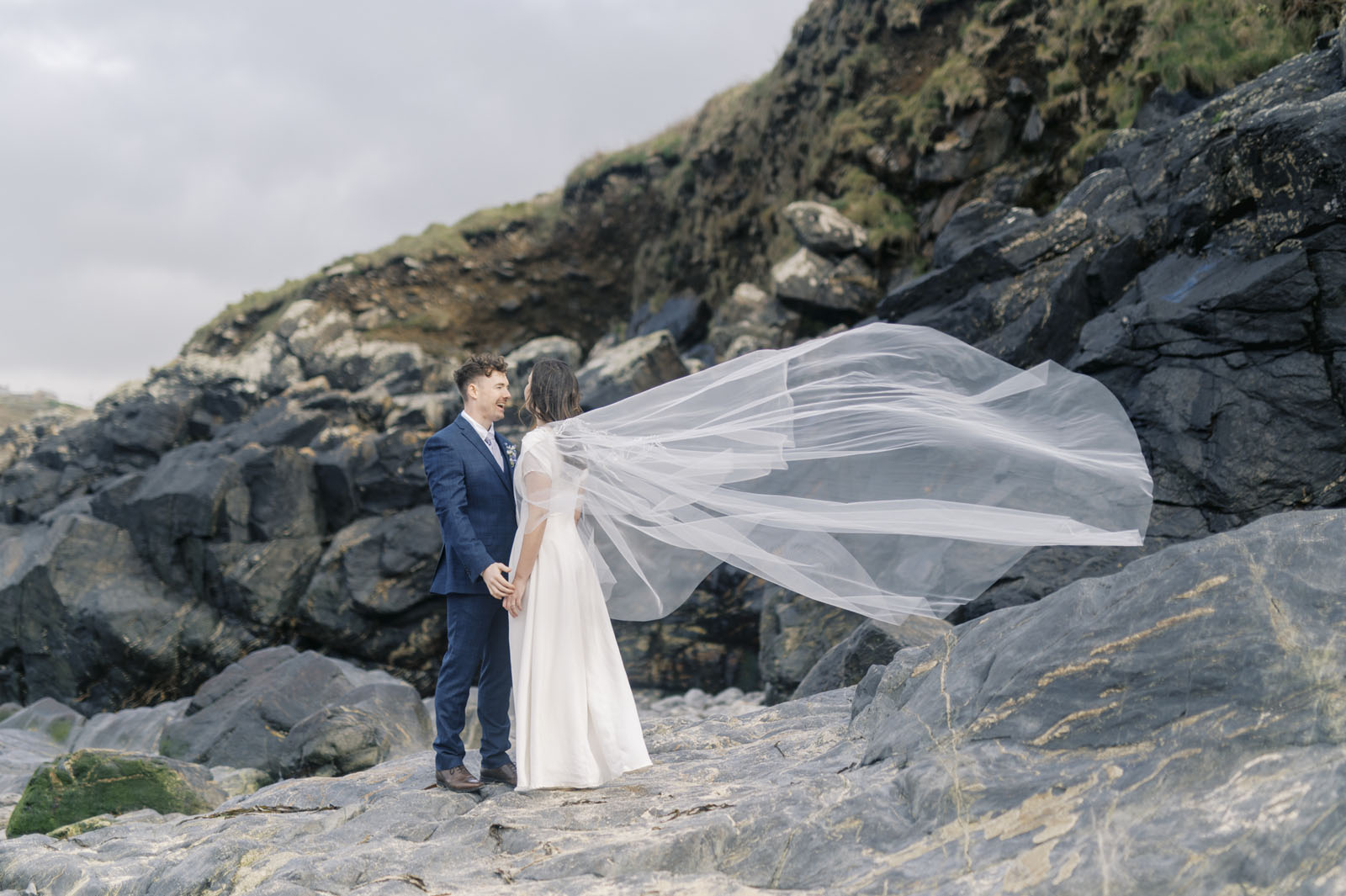 “This styled elopement features dreamy dresses and thought out florals, photographed along the romantic Cornish cliffs. The wild coastline twinned with the beautiful accessories and florals create an amazing combination to inspire anyone with ideas of eloping in Cornwall or the South West.