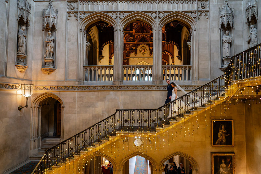 Cozy fairy lights and candlelit photos are perfect for couples who love romantic vibes. I loved photographing Annabel and Phil’s Valentine’s Day wedding at Ashridge House – the perfect Hertfordshire winter wedding venue! The day was a wet one, but with Ashridge offering so many cozy rooms, it didn’t matter – and we were still able to sneak outside to some sheltered spots and get those views of Ashridge in the couple portraits.