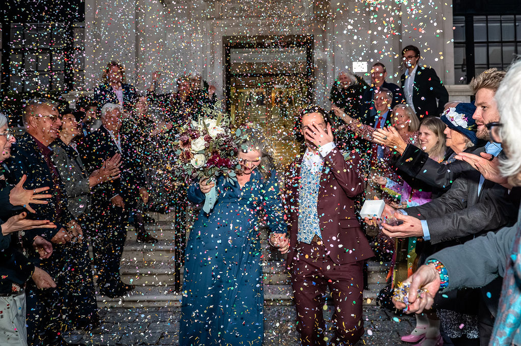 Just as the clocks rolled forward, Katie and Will planned their winter wedding at Islington Town Hall. Surrounded by close friends and family, they opted for gorgeous winter colours and we squeezed all the elements into their micro-wedding photography package. Even though it was dark when they wrapped up, we still managed an epic confetti shot outside the steps on the town hall.