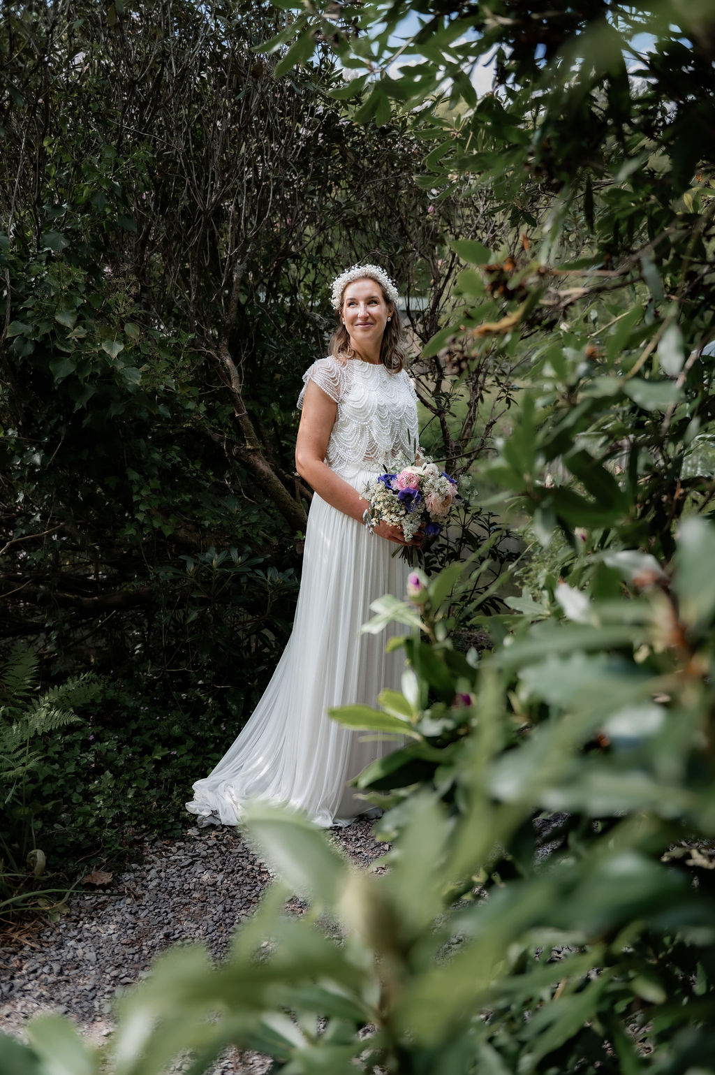 Nicola chose a stunning, bohemian 2 piece skirt and blouse by Catherine Deane from Browns of Totnes.