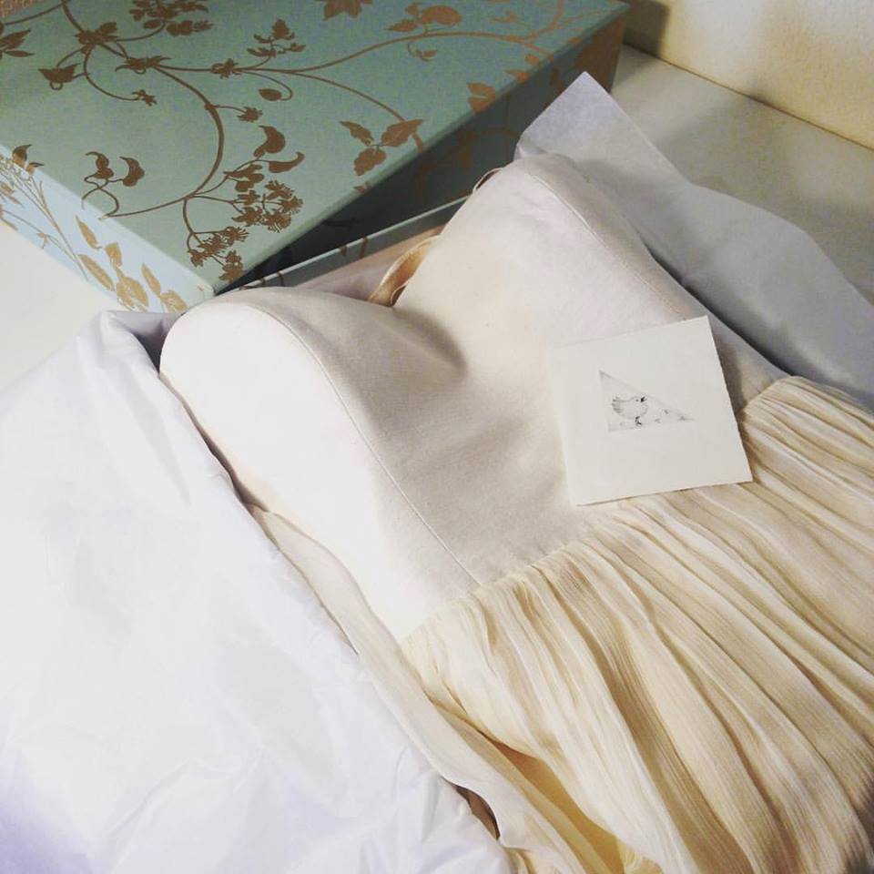 Wedding dress boxes arrive complete with acid free tissue and helpful advice on how to pack your wedding dress inside.